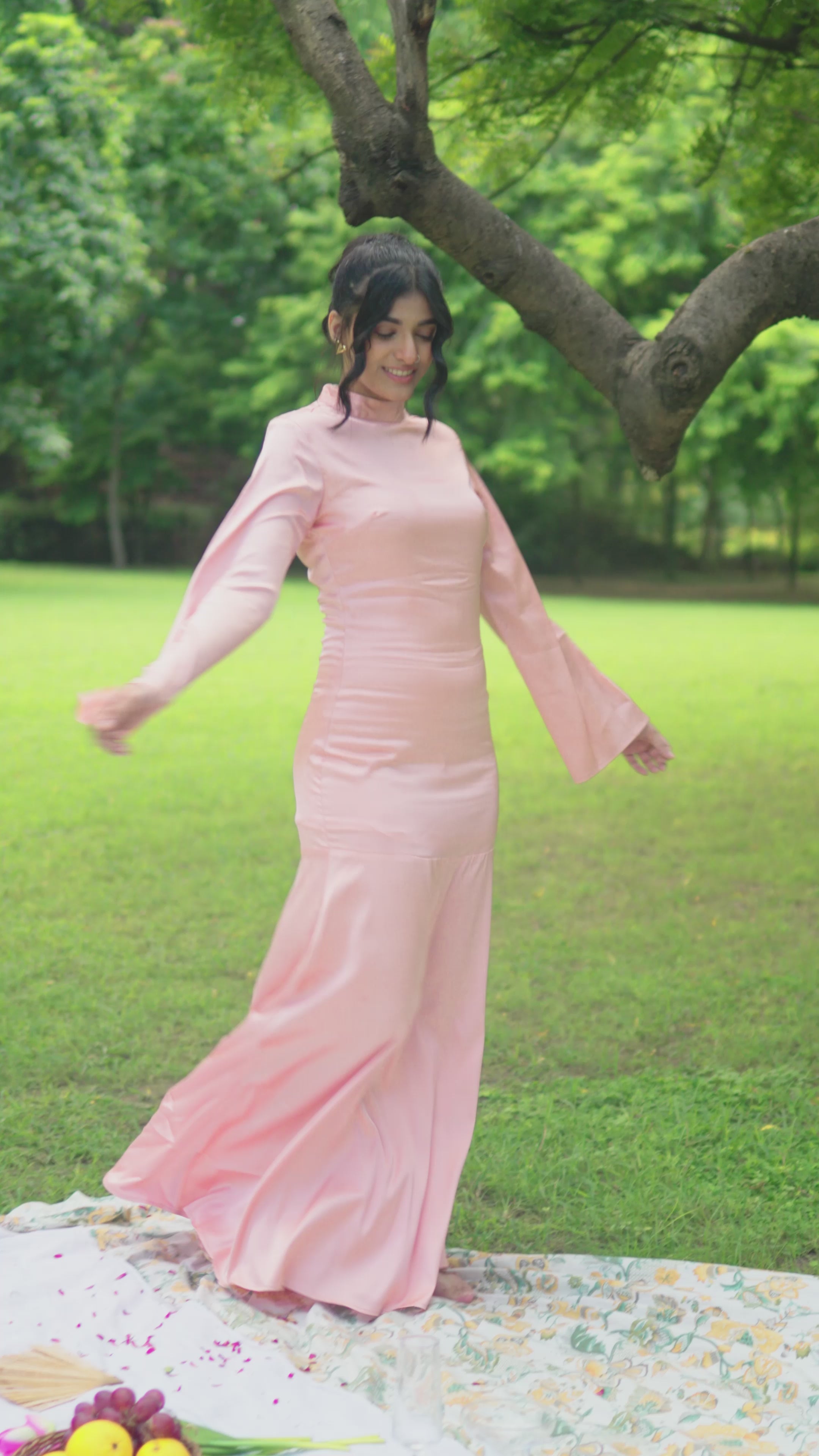 An elegant satin maxi designed for refined occasions. With its